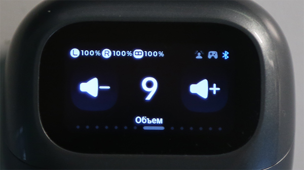 Экран - сенсорный, его можно прокручивать, и там будут последовательно выводиться самые разные виджеты: управление плеером, уровень громкости, эквалайзер, включение/выключение различных специальных режимов (игровой, пространственный, шумодав), настройка языка, таймаут экрана, яркость экрана, настройка обоев, поиск наушников, удаленное переворачивание страниц на смартфоне, удаленное управление камерой (съемка).