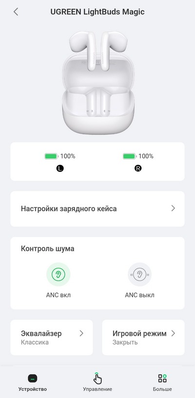 Наушники можно настраивать через прилжение UGREEN Connect App, которое доступно в Google Play и App Store.