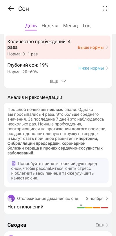 Мониторинг сна - как обычно у Huawei, просто отличный, и это лучший мониторинг из всех часов, что у меня были, Samsung там заметно отстает.