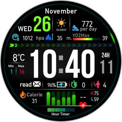 Датчики: акселерометр, гироскоп, пульсометр, барометр, компас, SpO2, термометр (температура тела)