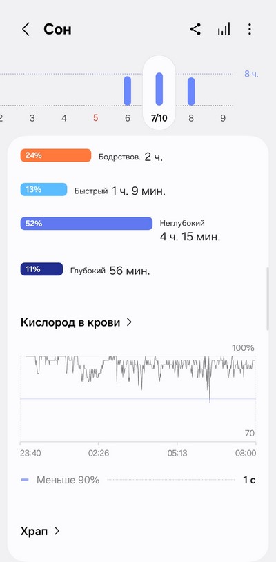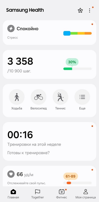 Ну и теперь давайте посмотрим, как собранные данные выглядят в приложении Samsung Health.