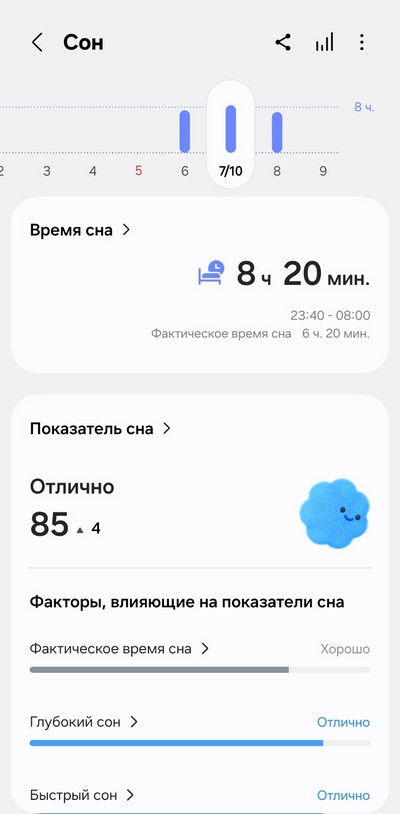 Подробные данные о сне.