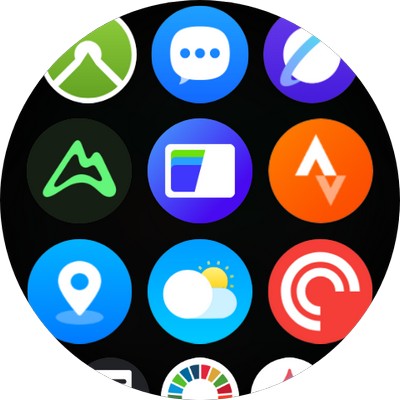 От циферблата свайп вверх - установленные приложения, коих довольно много. Также вы можете загружать любые приложения для часов из Google Play. У некоторых приложений могут быть различные скины - например, у секундомера. Также какие-то приложения могут выводить несколько экранов с информацией.