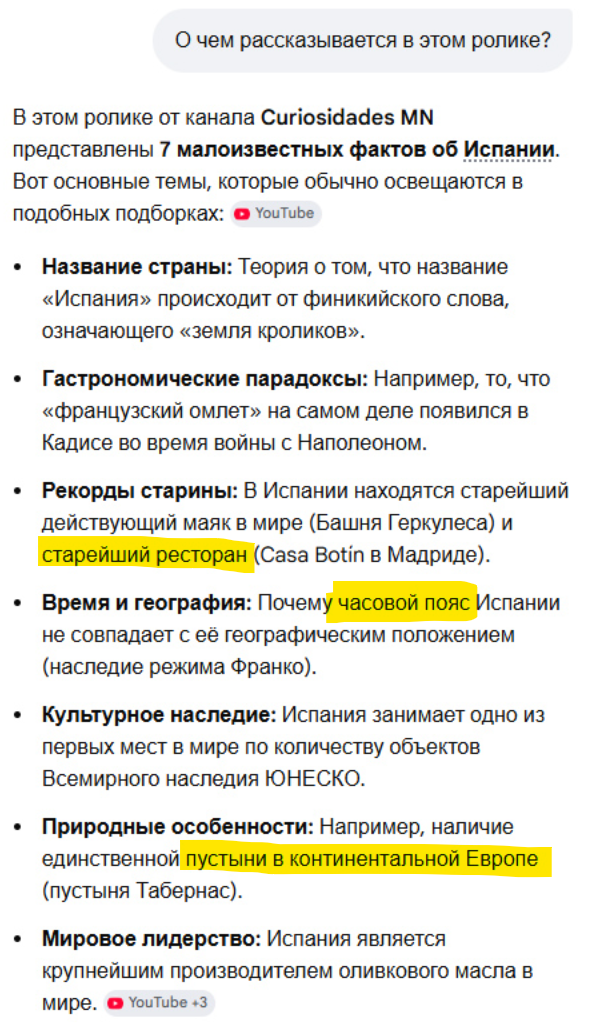 Вот, например, у меня открыт видеоролик на испанском, я расшарил для приложения окно браузера и попросил рассказать, о чем там идет речь.