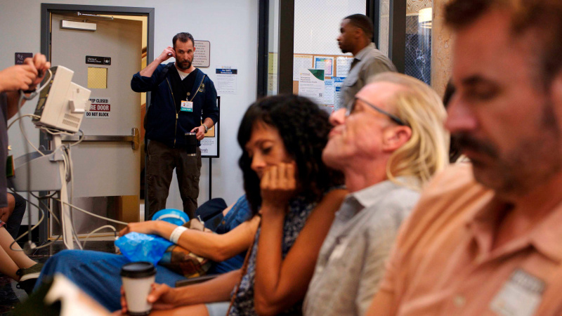 Сериал "Больница Питт" сделан в достаточно необычной манере. Если "Скорая помощь" - это чистый медицинский процедурал, который тянулся годами, то здесь изначально весь первый сезон, состоящий из 15 пятидесятиминутных серий - это четырнадцать часов той самой смены в неотложке: от прихода Майкла в семь часов утра в отделение, и до ухода дневной смены после 14 часов работы в сложных, а некоторые время и в совершенно экстремальных условиях.