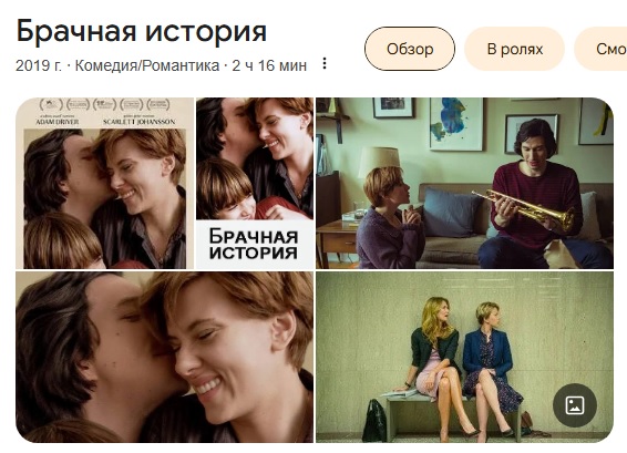 Фильм хороший, просмотра вполне достоин, но я такие картины называю "фильм одного года". Нашумел, пять номинаций на "Оскар", выигранный "Оскар", а через пару лет о нем никто и не вспомнит. Он будет проходить по разряду "А это не та картина, где выяснилось, что Скарлетт Йоханссон вообще умеет играть и что Адам Драйвер - это не только мрачный чувак из "Звездных войн"?".