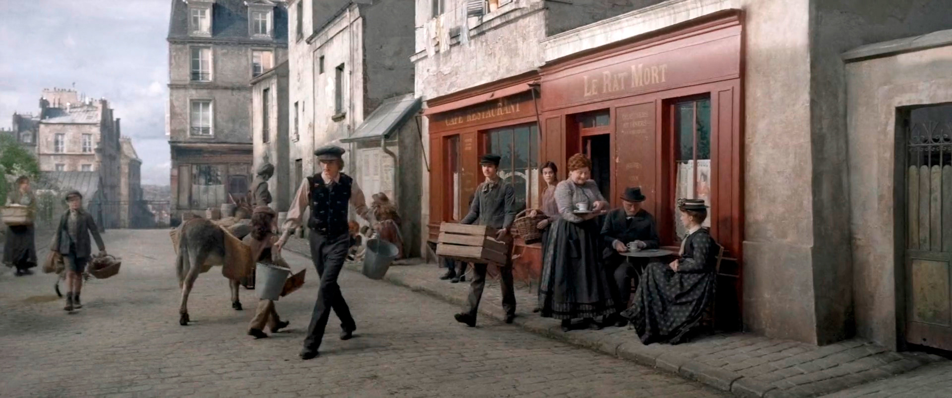 Сердик Клапиш раньше не работал с историческими постановками, а здесь все выглядит достаточно масштабно - в картине задействовано порядка 80 актеров массовки в соответствующих нарядах той эпохи, омнибусы и экипажи с лошадьми, также были возведены соответствующие декорации, - но он с этим вполне справился, а кроме того, в некоторые моменты постановщик очень искусно комбинировал Париж нынешний и Париж той эпохи, которые как бы перетекали один в другой.