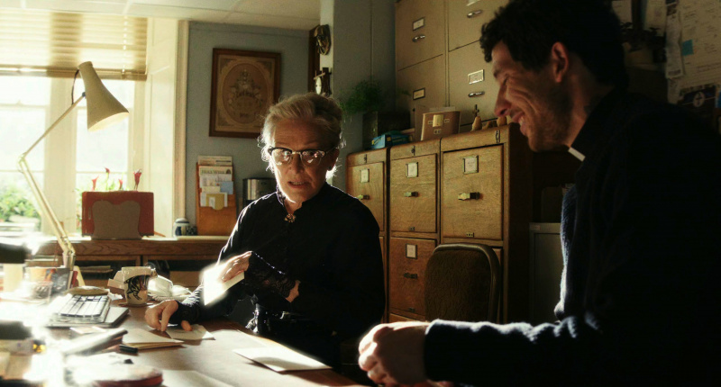 Причем даже если вы сразу и догадались, кто именно убийца (прелесть жанра whodunit и заключается в том, что зрители/читатели могут выдвигать собственные версии), то вряд ли это повлияет на впечатления от просмотра, потому что детективная часть здесь сделана отлично: подозреваемые - колоритные, Бенуа Бланк методично докапывается до истины, отец Джад испытывает различные моральные потрясения, но с ними более или менее справляется.