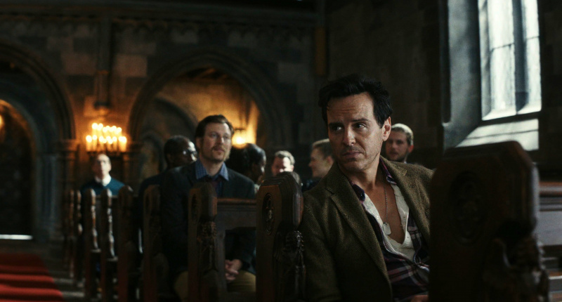 Первые сорок минут здесь идет история Джада и его служения в церкви Божьей Матери Неустанной Стойкости, где проповедует этот слегка (или даже не слегка) бесноватый монсеньор Уикс. И Джад вступает в прямой конфликт с Уиксом, ведь он парень реально боевой. И там челюсти монсеньора явно угрожала большая опасность, но все разрешилось радикальным образом: Уикса таинственно убили, и вот тут-то, ровно на сороковой минуте, в картине возник детектив Бенуа Бланк, слава богу.
