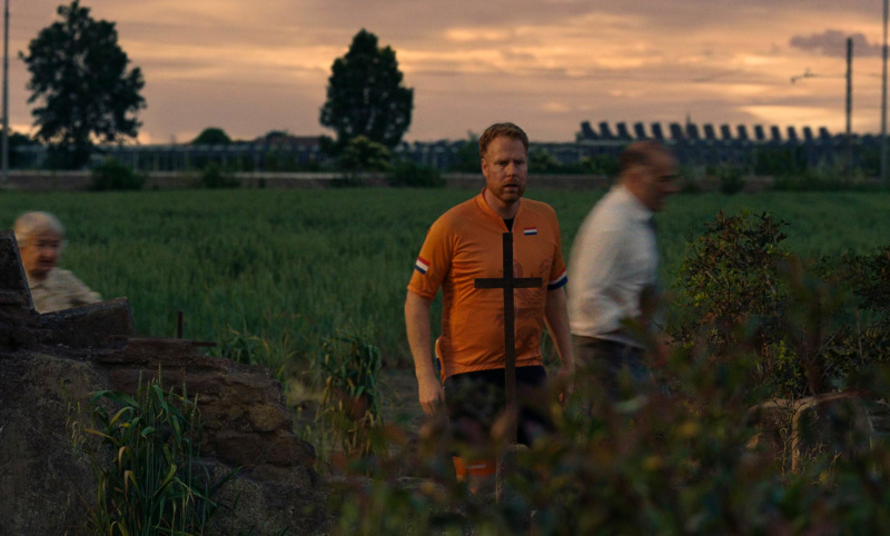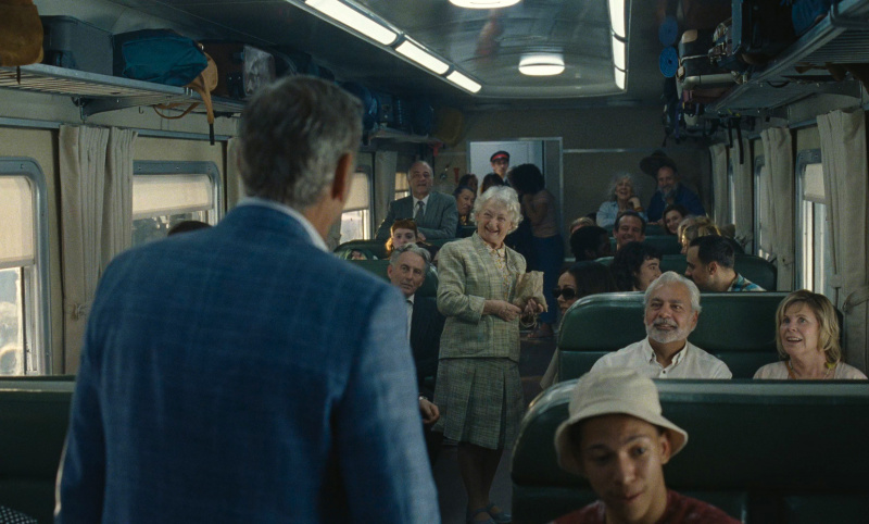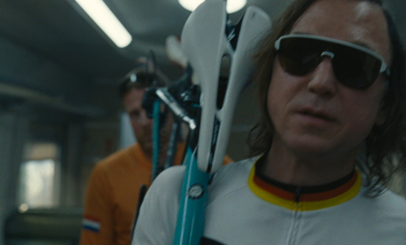 Ну, а чего ты тогда рефлексируешь? Приезжай на свое чествование, посмотри отрывки из своих старых фильмов (там показывают кусочки из реальных фильмов с Джорджем Клуни), прослезись, и пойми, наконец, что ущемленные чувства твоих дочерей - ничто по сравнению с любовью и благоговением миллионов зрителей во всем мире. И Джей Келли это в конце понимает. Правда, ему еще для остроты восприятия приходится побегать в белом костюме по предрассветному тосканскому лесу (это самая идиотская сцена в фильме), но ему до этого пришлось во время путешествия на поезде побегать за немецким велосипедистом (на эту нелепую роль пригласили хорошего немецкого актера Ларса Айдингера), зачем-то укравшим сумку у почтенной пассажирки поезда - это тоже смотрелось вполне по-дурацки, тем более что как следует по-дурацки побегать самому Джорджу Клуни уже удалось в поразительно идиотском фильме "Одинокие волки".