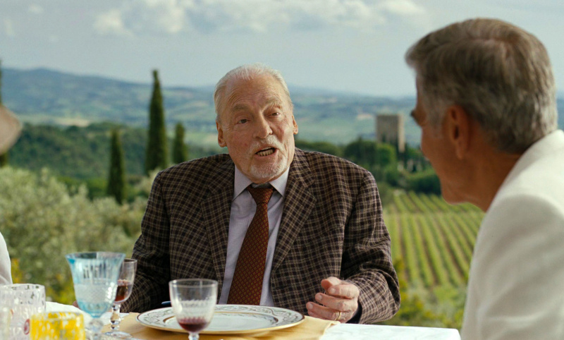 Вообще надо сказать, что с актерским составом в этом фильме - все очень хорошо: американские звезды, британские звезды, очень известный немецкий актер, замечательная итальянская актриса. Бюджет картины не называется, но по сведениям специалистов, он был не меньше, чем у "Белого шума", и здесь называют сопоставимые суммы. (Здесь только гонорар Джорджа Клуни, судя по всему, составлял порядка $20 млн.)
