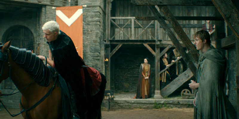 Почему я написал, что это не "Игра престолов"? Да по всему: по эпичности, по масштабу, по отсутствию большого количества действующих персонажей. Это вполне такая локальная - пока, по крайней мере, - история, где только один главный герой, его спутник и несколько персонажей второго плана. Весь первый сезон - история о том, как Дунк явился в Эшфорд, выдал себя за рыцаря, а потом огреб серьезнейших неприятностей, ввязавшись в конфликт с принцем.