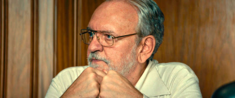 Здесь Моура очень хорош. Его Армандо - никакой не диссидент. Ученый, завкафедрой, который просто не смог смолчать, когда этот Гироти, назначенный исполнительным директором организации "Элетробрас", из коммерческих соображений решил уничтожить работу всего коллектива. И бац - он уже диссидент, его самого обвиняют в коррупции, он вынужден скрываться, и он знает, что Гироти ни перед чем не остановится, чтобы его физически уничтожить.