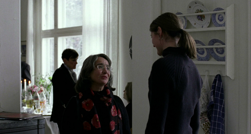 И там в фильме очень трогательно и тонко показана глубокая родственная связь между сестрами - Норой и Агнес: как они общаются друг с другом, как они друг друга поддерживают. Там есть один эпизод, кадр из которого вынесен на обложку, поставленный с исключительным тактом и нежностью, и Инга Ибсдоттер Лиллеос, сыгравшая Агнес, рассказывала, что фраза ее героини "Я люблю тебя" по отношению к сестре - была не по сценарию, она вырвалась во время съемки, и режиссер решил эту сцену оставить именно такой.