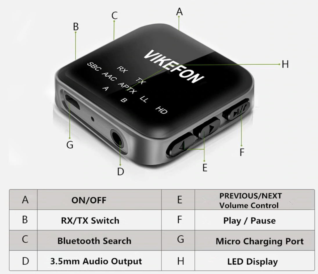 Очень интересный беспроводной приемник-передатчик Vikefon BT-B29. Стоит 1319 рублей. Оснащен чипом CSR8675. Поддерживает протоколы: SBS, AAC, aptX, aptX LL, aptX HD. Может работать с двумя устройствами одновременно (например, с двумя наушниками). Поддерживает и прием, и передачу. Очень компактный.