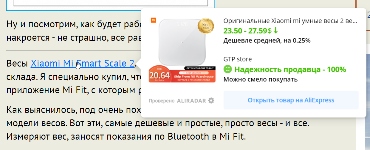 Возможно это результат действия плагина AliRadar, но меня устраивает: наводишь на ссылку - появляется окошко с ценой и магазином. Без всяких кликаний и переходов: