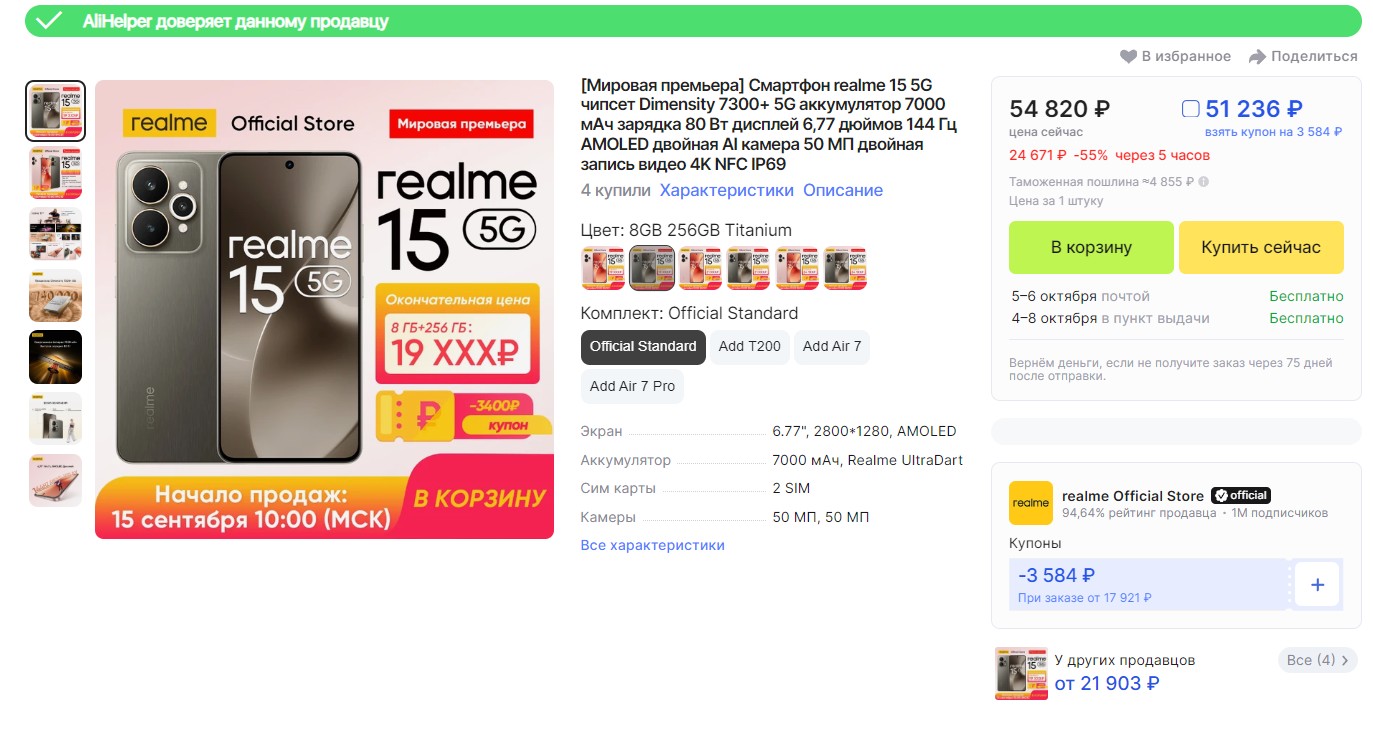 Цена: ~ 19 т.р. за версию 8/256 Гб, с учётом промокода (с 10:00 15 сентября, сейчас специально завышена).