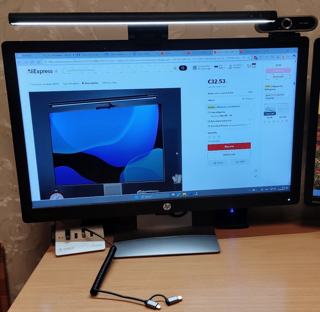 USB лампа для подсветки рабочего стола перед монитором. Есть регулировка цветовой температуры и яркости. Очень удобна тем, кто предпочитает работать с освещенным рабочим столом перед монитором. www.aliexpress.com