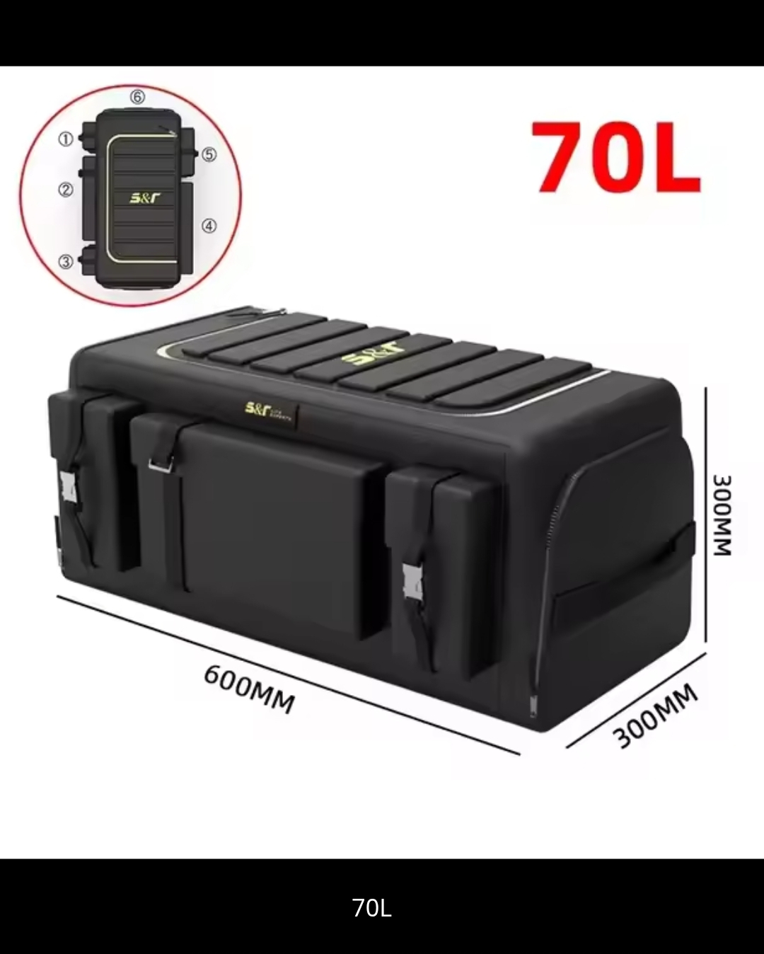 Там по периметру карманы навешены (нашиты). Они под приведенные габариты не подпадают. Наверное, если их полностью набить - еще 15 литров можно уместить. Не пробовал. У меня в нем живут все машинные причендалы. Удобная вещь. Я доволен.