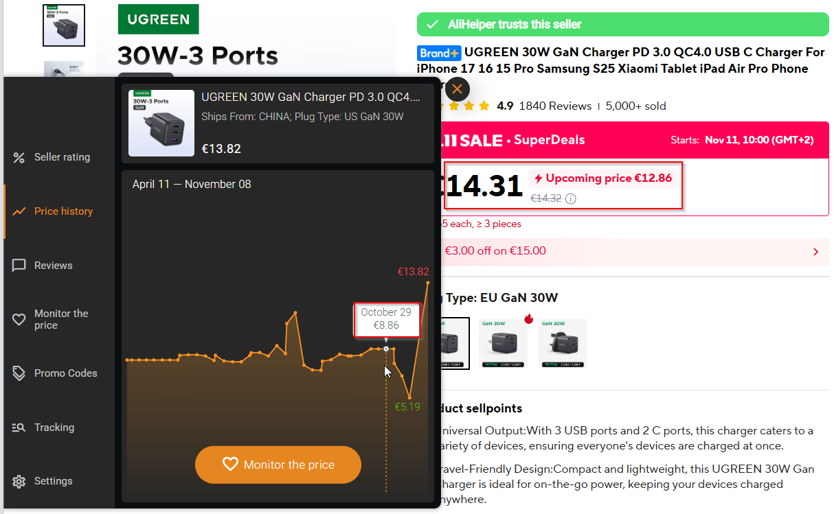 Обычная цена->Повышение перед 11.11->Цена на 11.11