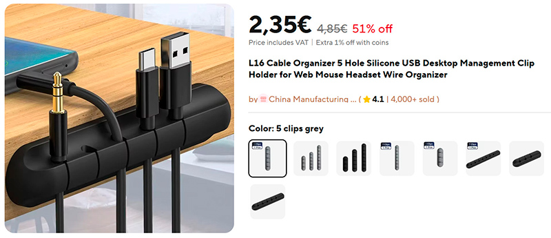 Хороший выбор удобных органайзеров для кабелей (ссылка для РФ) - два цвета и по три размера каждого цвета. Я такие приклеиваю к торцу стола, но их можно использовать и на столе. Очень удобно: из желобка торчит только головка кабеля, а когда кабель нужен - его просто вытягиваешь из органайзера. И никаких кабелей на столе!