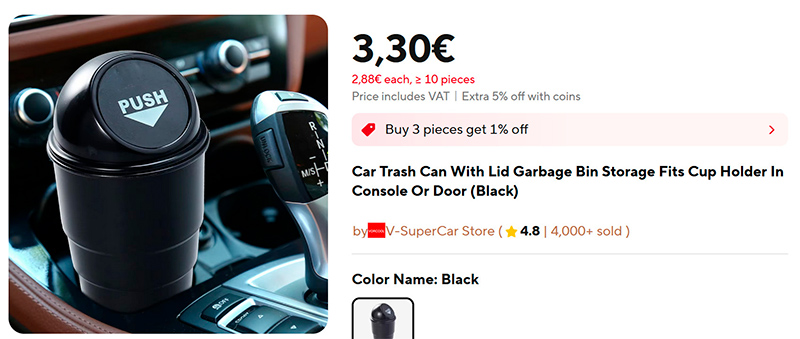 Компактный автомобильный мусорный бачок (ссылка для РФ), вставляемый в подстаканник.