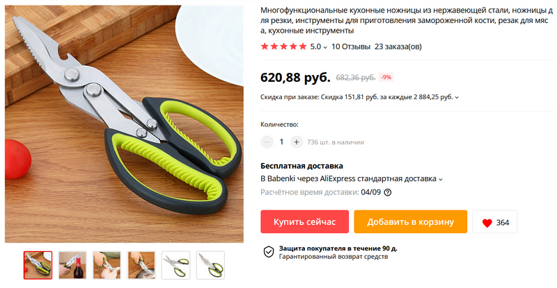 Продвинутые, усиленные, многофункциональные кухонные ножницы. Обещают, что всякие куриные кости, рыбьи плавники и так далее режут без проблем. Ну а когда вы узнаете, что они еще и бутылку пива могут открыть, то рука сама потянется заказать.