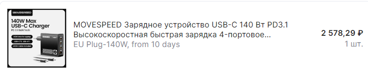 У меня есть несколько устройств от компании Movespeed, и я ими очень доволен, так что к данному производителю есть определенное доверие. На распродаже есть хорошая скидка на их мощный GaN адаптер для зарядки (ссылка для РФ) - аж 140 Вт, поддержка PD 3.1, три порта Type-C на 140, 100 и 20 Вт соответственно, один порт USB-A на 22,5 Вт. И ноутбук питать, и еще пару гаджетов заряжать.