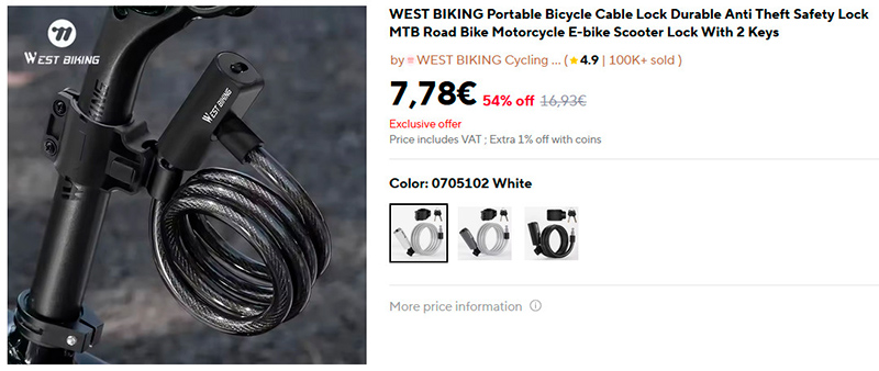 Искал себе трос для крепления велосипеда, чтобы этот трос можно было бы прикрепить сзади к стойке седла, а то нынешний трос приходится крепить на руле, и меня он раздражает. Купил вот такой вариант - WEST BIKING Portable Bicycle Cable Lock. Крепится легко и надежно, пользоваться удобно.