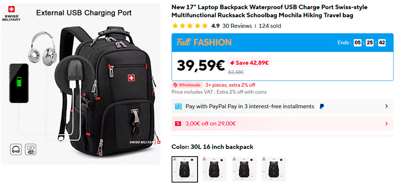 Несколько вариантов размеров рюкзака Swiss Military Влагозащищенный, множество отделений, порты для зарядки. Емкости от 30 до 80 литров.