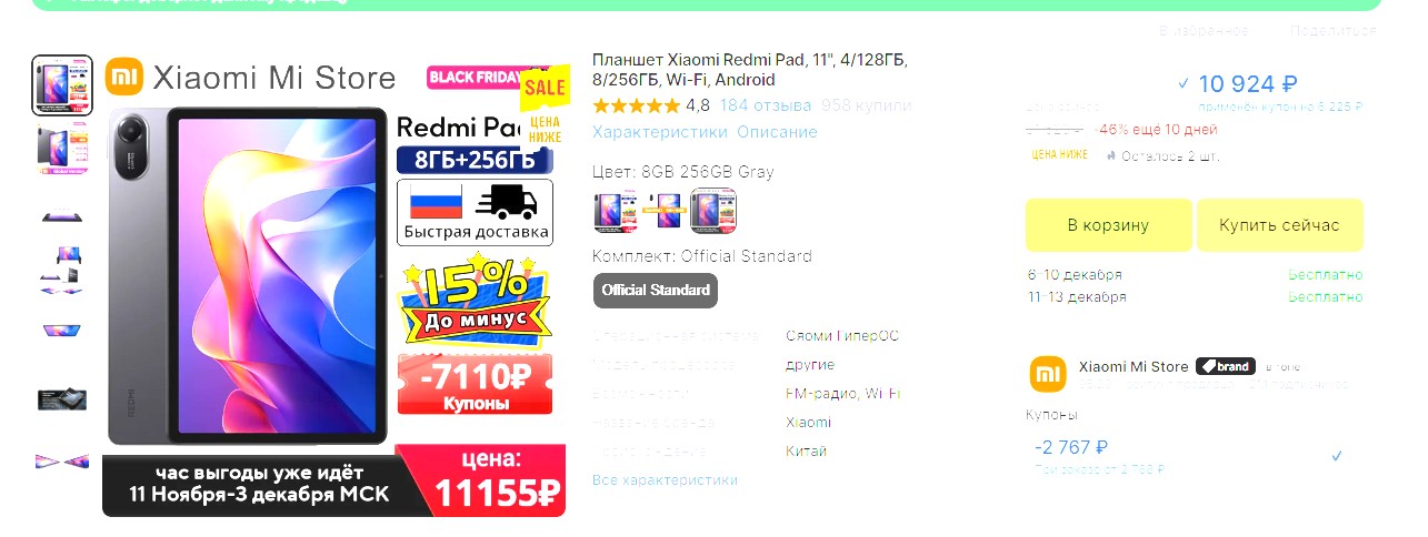 Как обычно, "День холостяка" (11 ноября) на Aliexpress сменяется "Черной пятницей", которая идет сейчас и закончится вечером 3 декабря.