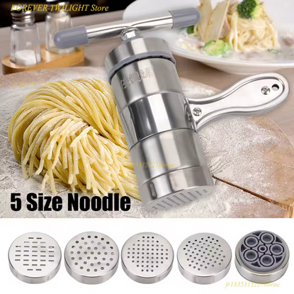 У меня дома самая типичная лапшерезка. Я, если честно, вообще не представляю, как стандартное тесто для пасты (100 г муки на 1 яйцо) можно выдавливать через такую вот фиговину.