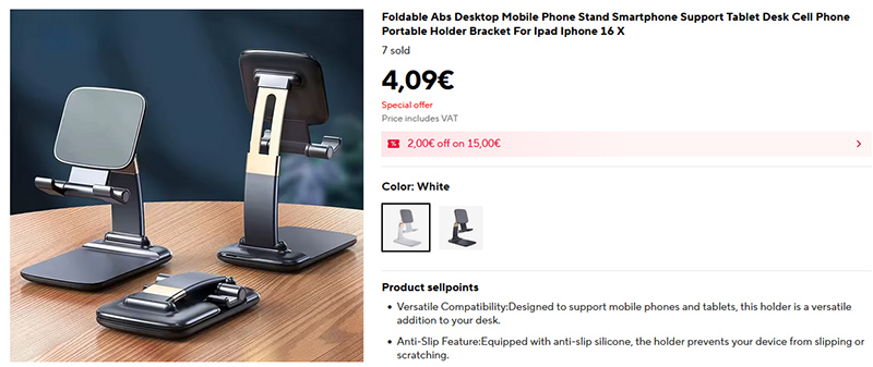Удобная и надежная металлическая подставка для смартфонов и планшетов. Ее можно регулировать по высоте, а также складывать, что позволяет носить подставку с собой.