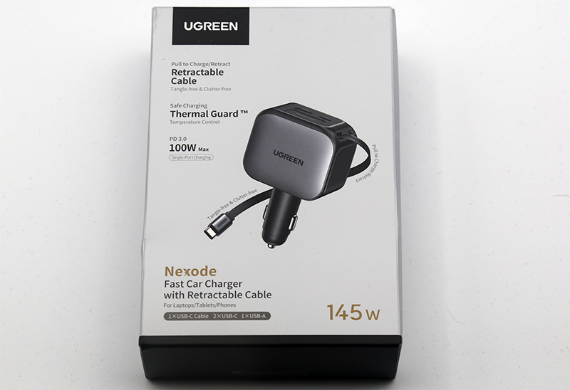 Продвинутый автомобильный адаптер UGREEN серии Nexode аж на 145 Вт. Встроенный кабель Type-C 70 см на 60 Вт, порт Type-C на 100 Вт, еще порт Type-C на 30 Вт и USB-A на 30 Вт. Для своих характеристик и цены еще и недорогой. Причем если вам не нужен такой запас по мощности, то по той же ссылке есть аналогичный адаптер на 90 Вт (€25) и на 60 Вт (€20).