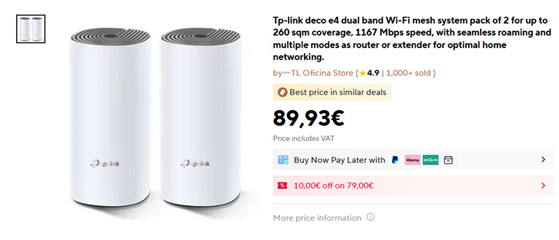 Среди обычных пользователей очень популярны MESH-системы ("бесшовный" домашний WiFi с хорошим покрытием), не требующие копания в настройках: купил, подключил к розетке, воткнул кабель от роутера, задал имя сети и пароль - и всё, WiFi работает. Раньше такие системы стоили довольно дорого - порядка 250 евро. Однако сейчас подобные системы заметно подешевели и, например, MESH-система Tp-Link Deco E4 из двух сателлитов обойдется всего в 90 евро, а она обеспечит достойное качество беспроводной связи в помещении до 260 кв.м. Если же вам нужно обеспечить покрытие, например, 2-3-этажного дома, то потребуется набор из 3 сателлитов, который обойдется в 130 евро.