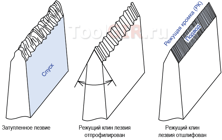 Перетачивал знакомым ножик после обдирной "точилки" - режущая кромка представляла собой пилу вот такого вида: ______|--------|_______|-------|______|