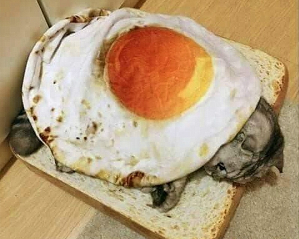 Наткнулся на Али. Одеялко с яйцом-пашот для домашнего любимца. Сразу захотелось стать маленьким котиком, чтобы меня положили на хлеб и накрыли яйцом-пашотом.