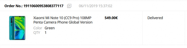 Как интересно. 11 ноября я купил Xiaomi Mi Note 10 (он же Mi CC9 Pro) за €549. (Там, правда, сработал промокод на крутую скидку, но в итоге все-равно получилось €450.)