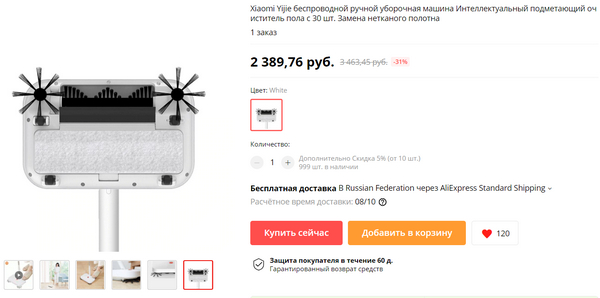 Помнится, китфортовский в свое время произвел фурор - он реально удобнее, чем махать веником с совком. Сломался он у меня в конце прошлого года (почти четыре года прожил, а пользовался я им часто), ну и я без электровеника загрустил. А теперь долой грусть, как сказал мальчик, когда его учительница умерла, - у меня скоро будет новый электровеник! Этот Xiaomi Yijie, как я понял, еще и с моющей насадкой. Простенькой совсем, но тем не менее. Приедет - поизучаю, доложусь.