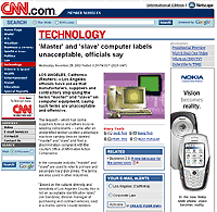 Как сообщает CNN (англ.), в Лос-Анджелесе поставщикам компьютерной техники теперь пытаются запретить давать ведущим и ведомым компьютерным устройствам, таким как жесткие диски и некоторая периферия, традиционные названия Master (хозяин) и Slave (слуга, раб). Потому что негры возмущаются. Дескать, им слово "slave" напоминает о тех ужасных временах, когда их предков привезли в Штаты и заставили пахать на белых угнетателей. Что интересно, самих возмущавшихся никто пахать не заставлял ни разу, а совсем наоборот, но они все равно возмущаются, гневно сжимая в кармане книгу "Хижина дяди Пети".