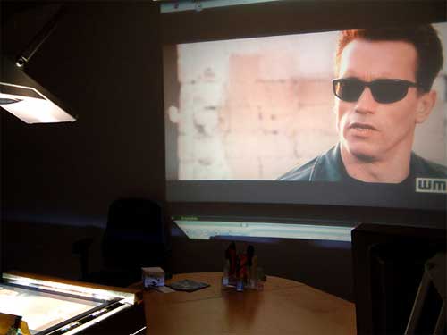 Как выяснилось, предложения выслать инструкции о том, как за $20-30 собрать из телевизора за $200 проекционник за $2000, попадаются далеко не только у нас. В том числе и на далеком аукционе E-Bay. Хороший человек Фрэнк Велькель, старший редактор и технический директор знаменитейшего журнала Tom's Hardware Guide (ссылка ведет на английскую версию издания, а русскую версию можно найти здесь), решил попробовать, можно ли все-таки каким-то образом в домашних условиях смастерить проекционный агрегат, который давал бы реально неплохое качество, а стоил бы вовсе не сумасшедших денег... Так вот, у него получилось. Как это делать, из чего и каким образом - подробно и совершенно бесплатно описано в статье "Проектор своими руками: XGA на стене всего за $300". И вот здесь - все чистая правда. Тем более что никакого особого фокуса в этом нет: проекционные аппараты (эпидиаскопы) прекрасно известны еще со времен моей школьной юности, а главное во всем этом - идея Фрэнка о том, каким образом можно соединить с ней ЖК-монитор. В результате получается достаточно громоздкая, не сильно эстетичная и слегка шумноватая конструкция, но качество картинки на экране (стене) - весьма впечатляет.