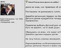 Руслан Курепин, создатель портала 21.Ru, на своем форуме выступил с инициативой "Новый Год должен приносить добро". Он призывает не заниматься ерундой, а организовать реальную помощь - вещами, подарками или просто деньгами - одному или нескольких детским домам. Если вы хотите поддержать эту, безусловно, нужную и полезную инициативу, подпишитесь на благотворительный лист deti@21.ru (для этого достаточно послать на адрес deti-subscribe@21.ru пустое письмо), где обсуждаются все эти вопросы.