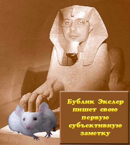 (Экслер вдруг задумался) Тем не менее я сделал производителям электронных сводилок хорошую рекламу, а так как за деньги я рекламу в обзорах не делаю никогда, надо подумать, что мне с них взять... О, придумал! Мужики! Сделайте специальный вариант сводилок для котов! А то Бублик в силу некоторых нынешних особенностей организма не может знакомиться с кошками для страстной любви. Ему они нужны просто для дружбы, для простого человеческого общения. Если у него будет такая штука, на которой кошачьим языком написано: "Прогулки по помойке", "Совместное поедание рыбки", "Песни под окнами", - кошки ничего такого ОСОБЕННОГО от него требовать не будут.