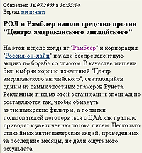 Что происходит в нашем любимом Рунете? Да как обычно - ничего особенного. Контора пишет, клиенты читают. Контора Mail.ru лицензировала для своего использования поисковик Гугль и стала его активно рекламировать - в свойственной этой конторе рекламной манере. На баннерах, которые миллионами каждый день крутились в Рунете, поначалу было слегка иносказательно написано, что поиск на Mail.ru - это просто супер, а поиск на всяких Яндексах и Рамблерах - полный отстой. При этом на "Яндексах" и "Рамблерах" вдруг вспомнили, что на свете существует закон о недобросовестной рекламе, в результате чего Mail.ru стали весьма заслуженно пинать, а она стала со стоном отбиваться, заявляя, что реклама была совершенно честная и корректная, но баннеры, правда, слегка отредактировала.
