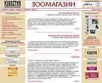 Сайт тематического приложения к газете "Известия" - журнала "Зоомагазин". Журнал о животных, для животных, по поводу животных и вокруг животных. В отличие от многих других сайтов, представляющих собой онлайновые варианты печатных изданий, здесь на информацию не скупятся. А то ведь знаете, как бывает... Заводит некое печатное издание свою страничку, выкладывает там обложку очередного журнала - и все! Вот тебе, бабушка, и онлайновое представительство! Зачем его вообще делали - непонятно. В случае с "Зоомагазином", к счастью, все намного лучше. На сайте выложены не только все статьи и заметки из очередного номера, но и даже сами журнальные полосы в цветном оформлении в формате PDF, что позволяет с помощью Сети увидеть практически полную копию печатного варианта.