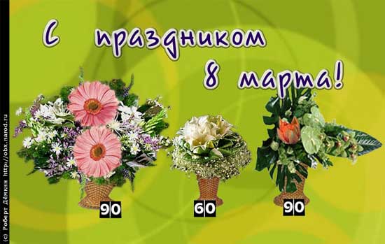 Кстати, я еще не поздравлял наших милых женщин с Восьмым марта! И вовсе я об этом не забыл, а просто приберег поздравление напоследок, чтобы сопроводить его соответствующей случаю картиной Роберта Демкина. Итак, поздравляю, желаю, чтобы всего-всего, а кроме того - мужа непьющего. Хотя непьющие - они очень злые. А вот и праздничная открытка от Роберта: