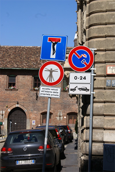 Когда видишь вот такие знаки рядом с миланским монастырем, рассказала Индира, понимаешь, что работы Леонардо - совсем близко.