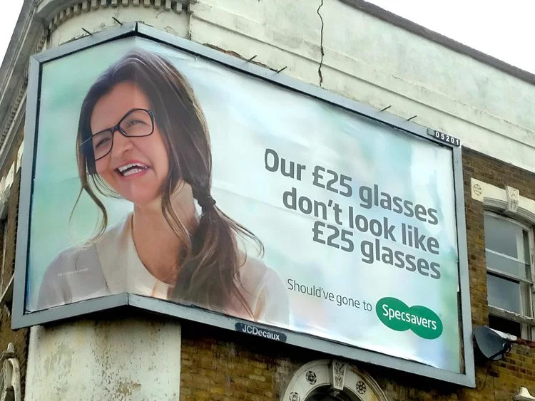 Надпись "Наши очки за 25 фунтов не выглядят как очки за 25 фунтов". А и правда, не выглядят, считает Зубр.