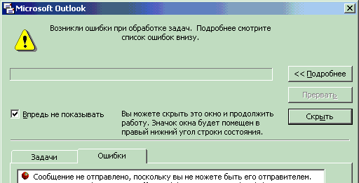 У Романа очень серьезные проблемы во взаимоотношениях с "Аутлуком". Тот его ни в какую не признает и работать с Романом не хочет. То есть Роман знает, что "Аутлук" - его программа и должна выполнять его указания, а "Аутлук" считает, что... В общем, смотрите сами, что заявляет этот негодяй.