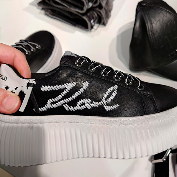 Сослан сфотографировал кроссовок в бутике K.Lagerfeld в СПб и спрашивает, что это вообще должно означать, потому что при всем желании кроме очень искаженного слова Kal тут трудно что-то увидеть, и мы с Бубликом не будем утверждать, что он - художник, и он так видит. Скорее всего, просто те китайцы, которые для Лагерфелда шьют это все в своих мастерских, просто "немноско-немноско" перепили рисовой водку Байцзю. Ну или Хаундзю. Ну или Чоуцзю. В общем, что-то они такое перепили, да.